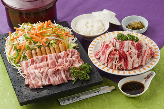 豚肉・甲州ワインビーフ・エビ・ホタテ・ソーセージ・野菜・浅間漬・ご飯