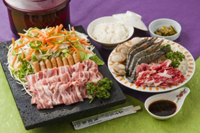 | 豚肉(Aコース Bコース Cコース) 牛肉(Bコース Cコース) エビ、ホタテ(Cコース) キャベツ ピ-マン もやし 玉葱 人参 パセリ |
