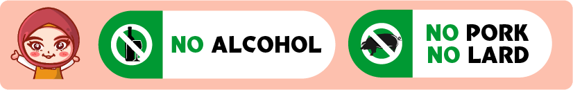 "Mulai 2023, makanan bebas alkohol dan bebas babi akan tersedia untuk pelanggan Muslim." Silakan hubungi kami melalui telepon untuk detailnya.