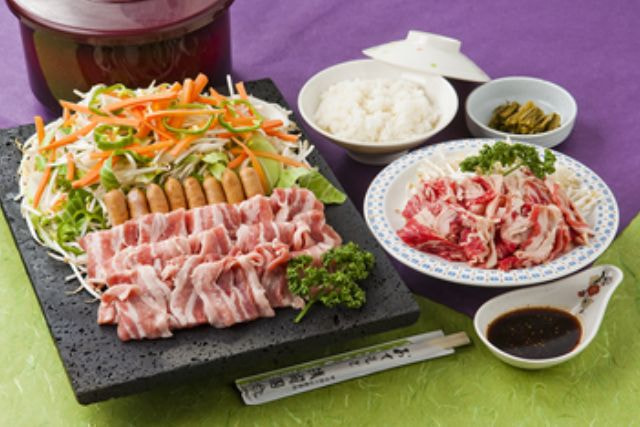 豚肉・甲州ワインビーフ・エビ・ホタテ・ソーセージ・野菜・浅間漬・ご飯